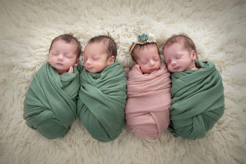 When we did this session, the quadruplets were exactly one month old, weighing in at around 6 pounds each—and still about two weeks shy of their actual due date. Which honestly makes it even more incredible.